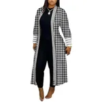 Product information: Color: black and white plaid printing, red printed, denim blue, houndstooth, apricot Size: S,M,L,XL,2XL,3XL Version: Loose Style type: temperament commute Popular elements: splicing Thickness: medium Fabric name: Polyester Sleeve type: regular sleeve Main fabric composition: Polyester (polyester fiber) Length: Long (80cm Applicable Gender: Female Applicable age group: Adult Size: Note: 1. Asian sizes are 1 to 2 sizes smaller than European and American people. Choose the larger size if your size between two sizes. differences due to . 2. Please check the size chart carefully before you buy the item, if you don't know how to choose size, please contact our customer service. 3.As you know, the different computers display colors differently, the color of the actual item may vary slightly from the following images. Packing list: Outer jacket * 1 piece Product Image: