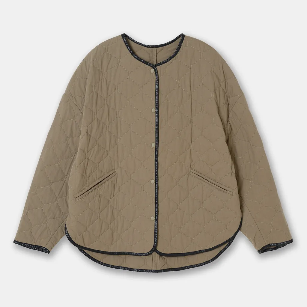 Collarless Short Rhombus Plaid Puffer Small Design Lightweight