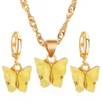 Color Acrylic Butterfly Earrings And Necklace Set - 06 Yellow Suit