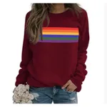 Color Striped Print Round Neck Pullover Long Sleeve Sweater -