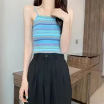 Colorful Striped Knitted Small Suspender Vest - Blue