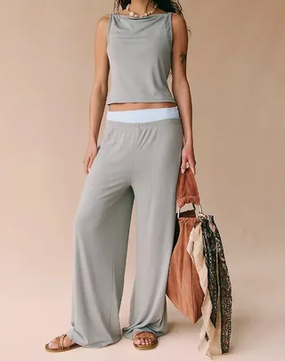 Sling Loose Drooping Wide Leg Pants Suit - Gray