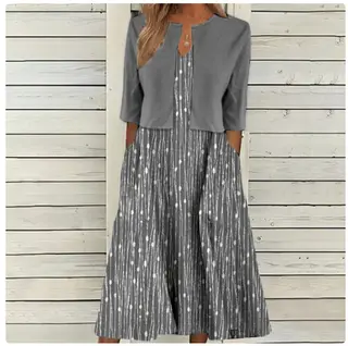 Commuter Floral Print Dress Two-piece Set - 3 Models