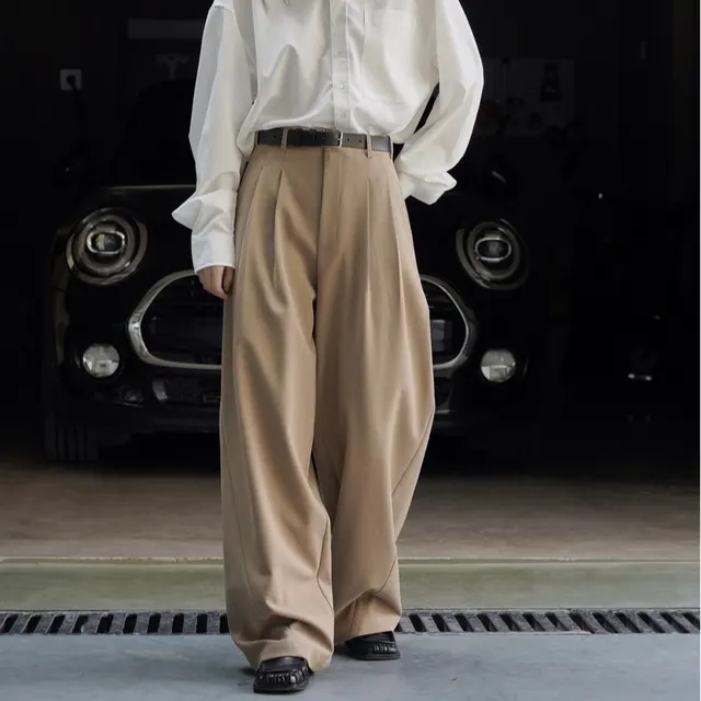 Product information: Thickness: medium Fabric name: polyester blend Color: Black, Kaki Brown Elastic force: medium elastic Pants length: trousers Main fabric composition: Polyester (polyester fiber) Waist type: high waist Size: S,M,L Applicable Gender: Female Style type: Japanese and Korean casual Applicable age group: Adult Pants type: loose type Popular elements: splicing Style: wide leg pants Craft: pleating Size: Note: 1. Asian sizes are 1 to 2 sizes smaller than European and American people. Choose the larger size if your size between two sizes. differences due to . 2. Please check the size chart carefully before you buy the item, if you don't know how to choose size, please contact our customer service. 3.As you know, the different computers display colors differently, the color of the actual item may vary slightly from the following images. Packing list: Pants*1 Product Image: