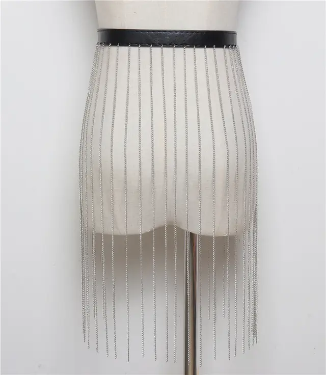 Concave Shape Versatile Long Tassel Chain Belt - Black
