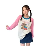 Contrast Color Cartoon Print Raglan Long Sleeve -