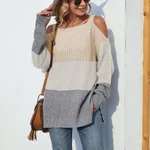 Contrast Color Off-the-shoulder Split Sling Sweater - Striped Card-m