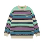 Contrasting Color Striped Loose Round Neck Sweater - Apricot