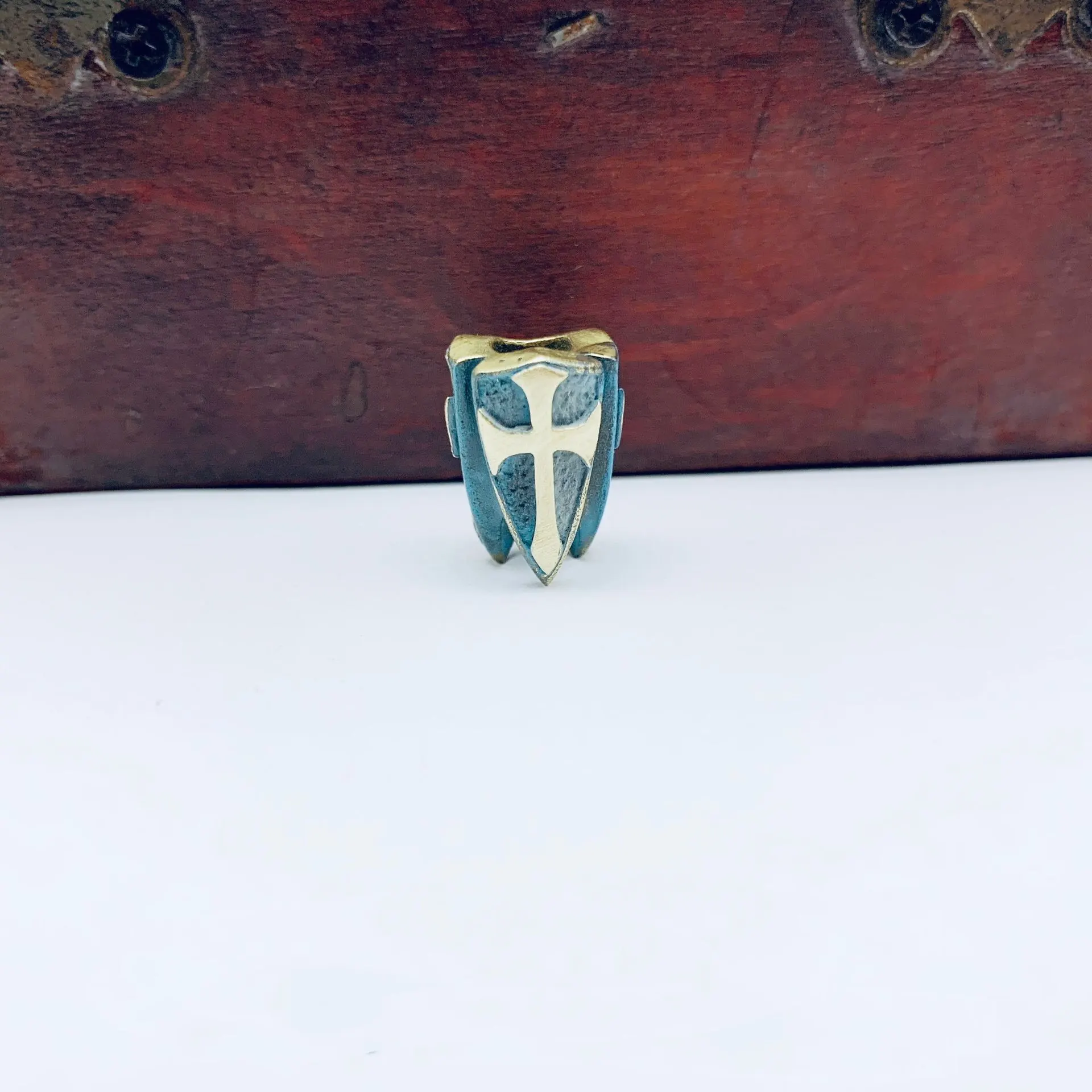 Product information: Type: pendant Treatment Process: wax loss process Color: Brass version, white copper version, brass blue version, copper version, black brass version, black copper version, purple red version, grass green version Series: hand strap Image: Cross Shield Material: Brass white copper Packing list: 1*pendant Product Image: