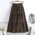 Cotton And Linen Skirt Color Fabric Splicing For Commuting - Brown