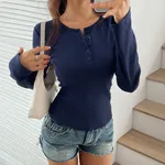 Product information: Pattern: solid color Fabric name: knitted Color: pink, black, creamy-white, navy blue Main fabric composition: Polyester Size: S,M,L,XL Popular elements: Buttons Style: pullover Style: European and American style Process: non-ironing treatment Size: Note: 1. Asian sizes are 1 to 2 sizes smaller than European and American people. Choose the larger size if your size between two sizes. differences due to . 2. Please check the size chart carefully before you buy the item, if you don't know how to choose size, please contact our customer service. 3.As you know, the different computers display colors differently, the color of the actual item may vary slightly from the following images. Packing list: Long-sleeved *1 Product Image: