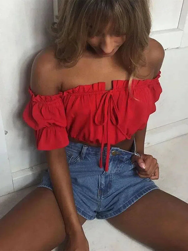 crop tops women summer lantern sleeve strapless