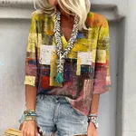 Cross-border Clothing 3d Printed V-neck Pullover Leisure Cropped Pod