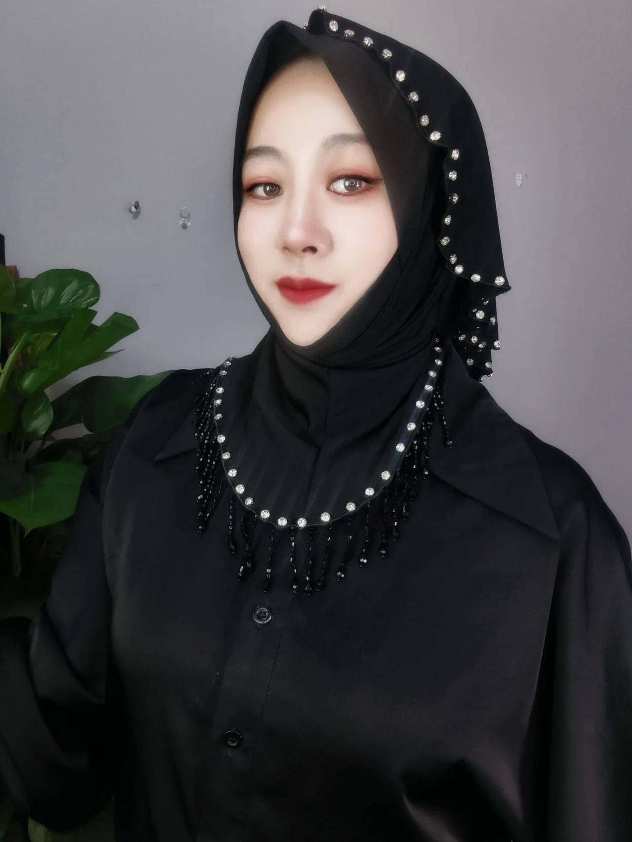 Crystal Tassel Dovetail Large Version Crystal Linen Fabric Scarf -