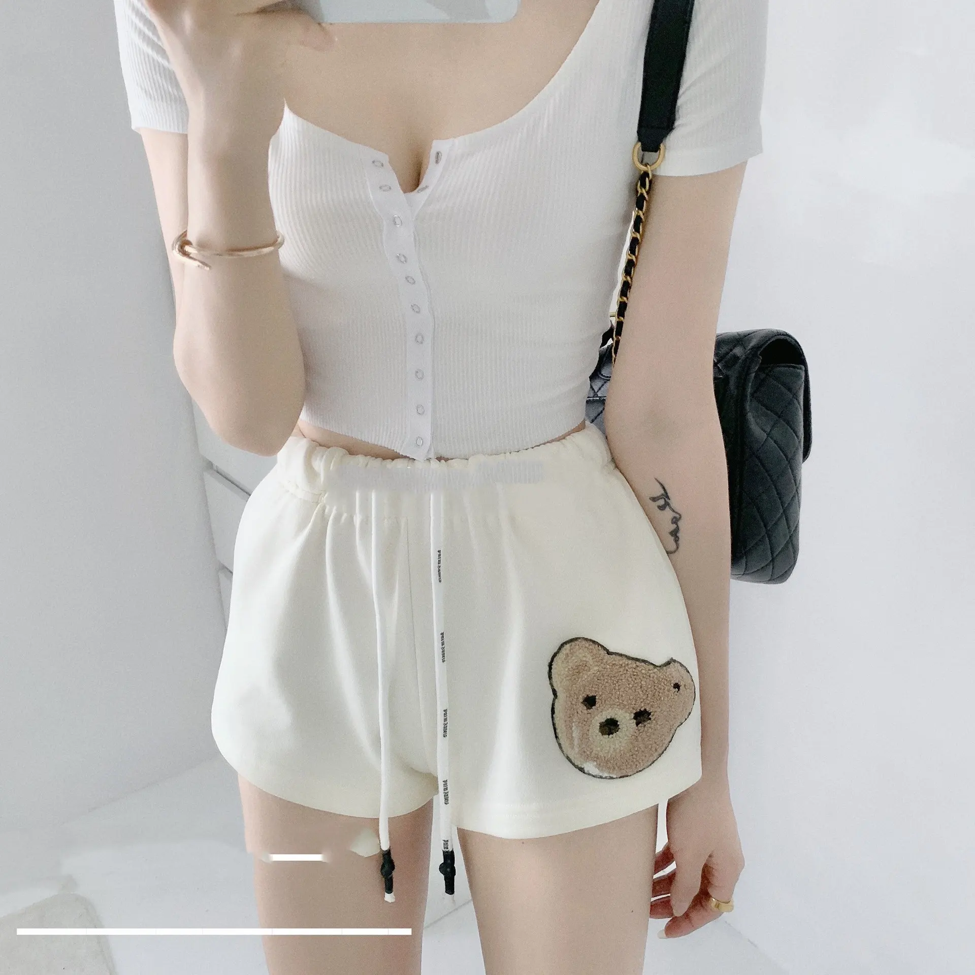 Towel Embroidered Bear Wide Leg Pants - Apricot