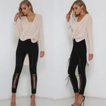 Cutout Slim Skinny Pants And Pencil Pants - Black