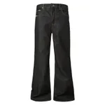 Dark-colored Slightly Flared Raw Denim Jeans For All Seasons - Black