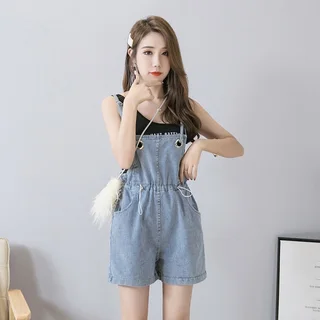 Denim Suspenders Shorts Loose And Slimming High