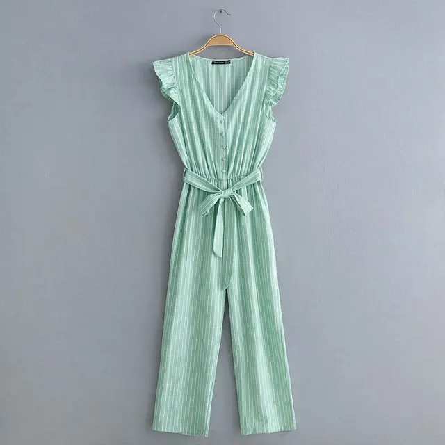 Denise Collectie - Stijlvolle Katoenen Jumpsuit Met Strepen - Green