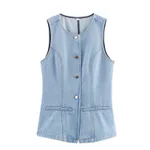 Design Tight Waist Two Colors Denim Waistcoat Vest - Light Blue