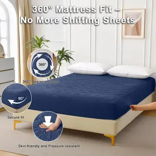 Diamond Grid Ultrasonic Waterproof Mattress Protector - Navy Blue