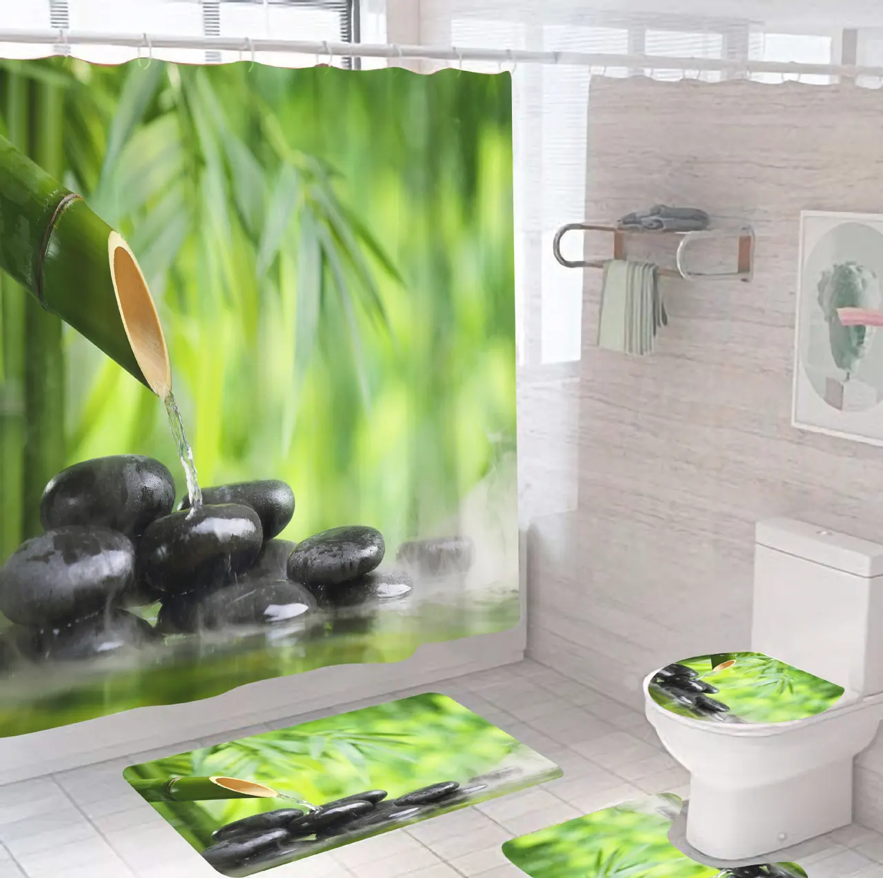 Digital Printing Shower Curtain Waterproof And Mildew Proof Metal