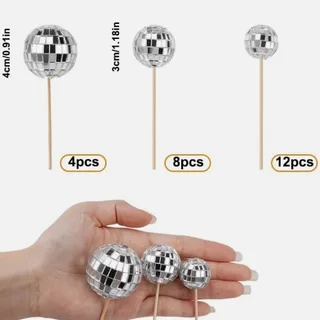 Product information: Material: Glass Size: with wooden stick mirror ball 3cm, with wooden stick mirror ball 4cm, with wooden stick mirror ball 5cm, with wooden stick mirror ball 2.5cm Category: cake plug-in Packing list: Mirror ball * 1pcs/mirror ball * 4pcs/mirror ball * 8pcs/mirror ball * 12pcs/mirror ball * 24pcs Product Image: