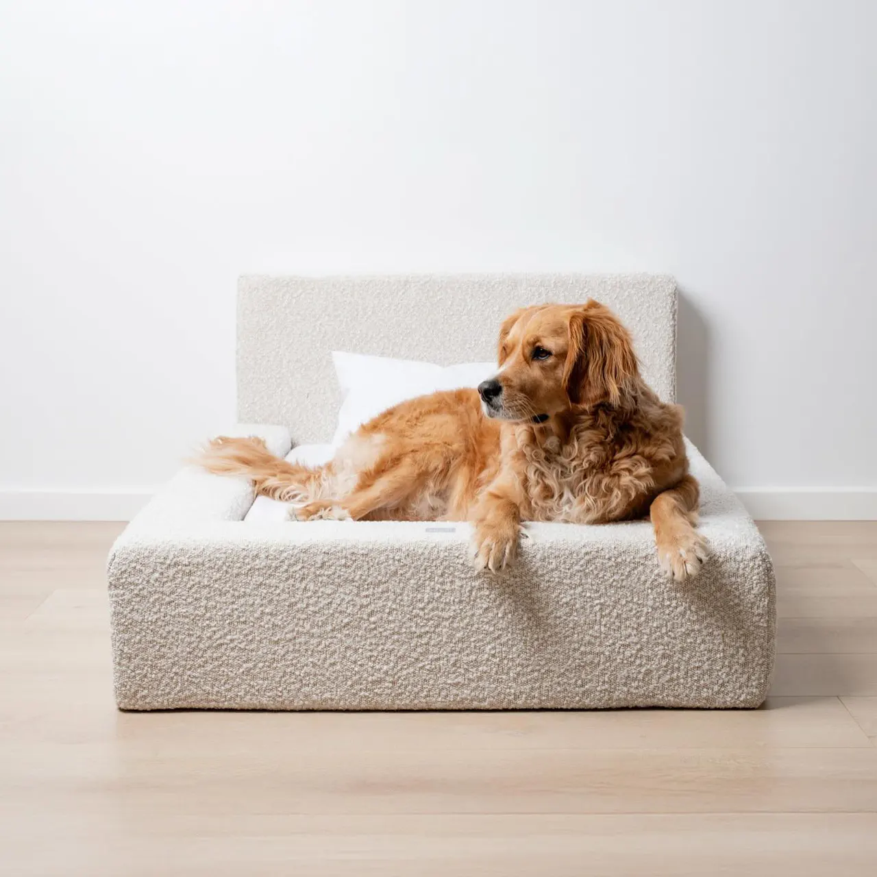 Product Highlights • Wraparound security design: Edge + backrest structure, simulating a "cave-like" sleeping environment, reducing the dog's anxiety of being alone, making it feel as if it were embraced by its owner • Cloud-level comfortable filling: High-density elastic sponge + polyester fiber, soft and non-collapsing, supporting joint pressure (especially suitable for senior dogs/dogs with sensitive joints) • Easy to clean "lazy friendly" : The fully enclosed zipper jacket can be machine washed (in cold water gentle mode) • Home style appearance level compatibility: The milk apricot textured fabric has a high-end feel without being out of place. Placed in the living room or bedroom, it looks like a soft furnishing piece rather than a "pet item" • Large space for free stretching: There are three sizes to choose from, L size. Medium-sized dogs such as Golden Retrievers and Labradors can fully stretch their bodies and find comfortable positions whether they are curled up or lying on their stomachs