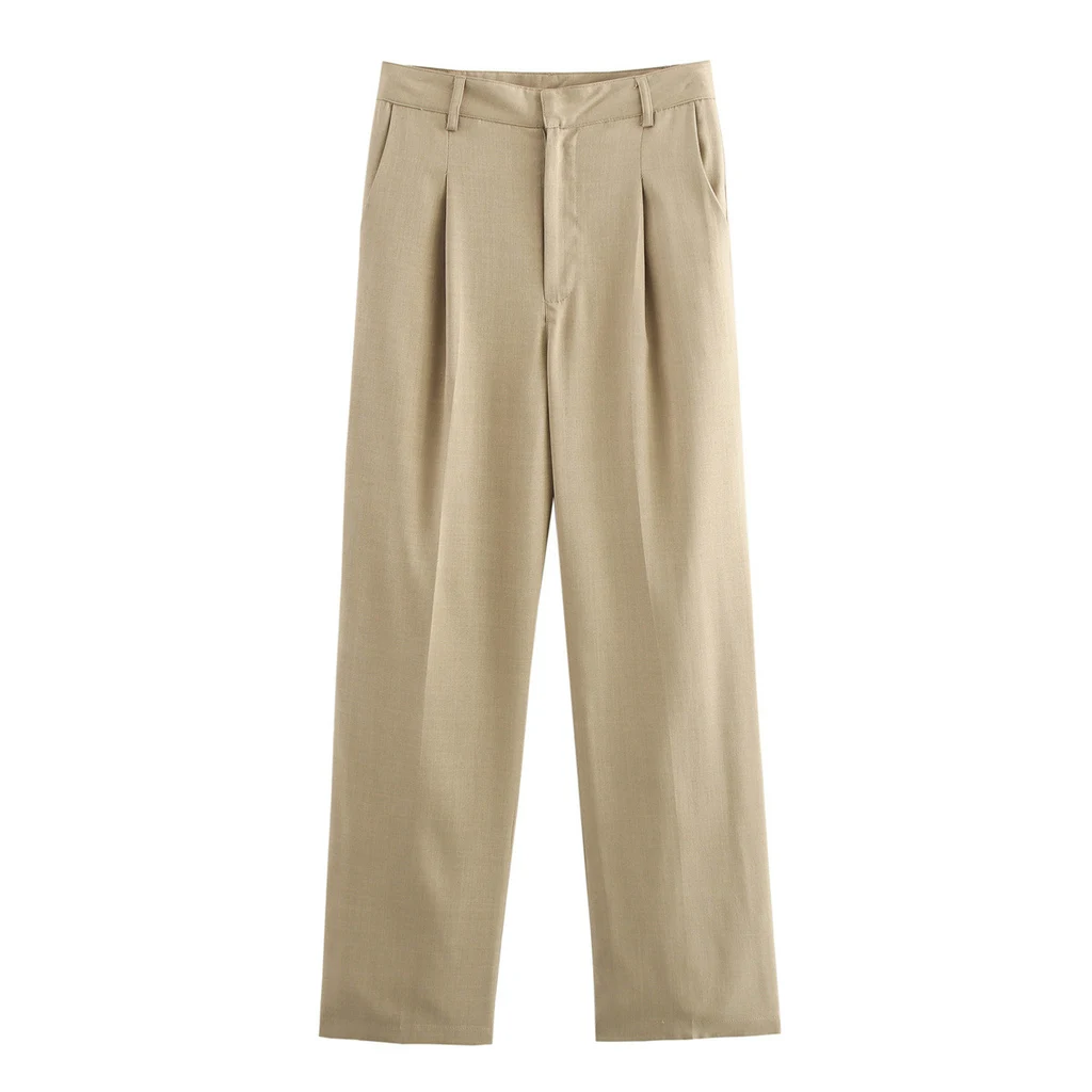 Double Pocket Coat Top Pants Suit - Khaki Pants