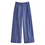 Double Pocket Cropped Coat Top High Waist Wide Leg Pants Suit -