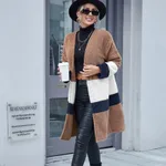 Double-sided Woolen Color-blocking Mid-length Cardigan Windbreaker