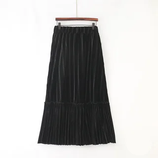 Elastic Gold Velvet Temperament A-line Long Skirt - Black