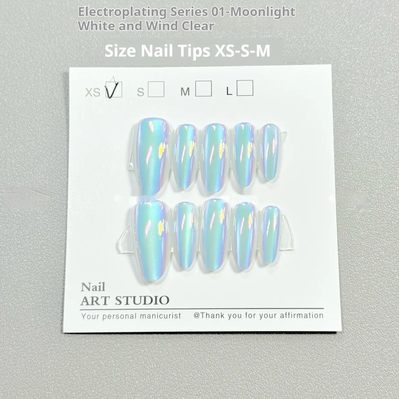 Product information: Series: electroplated Cat's Eye Material: PVC, resin Applicable population: general population Specifications: medium oval XS, medium oval S, medium oval M, medium oval xs-s-m, short ladder XS, short ladder S, short ladder M, short ladder XS-S-M Style: solid color, Cat's Eye, hot girl, European and American, ins style, pure desire, Aurora armor Packing list: Nail x1 set Product Image: