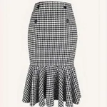 Commuter Houndstooth Stretch Hip Skirt - Black And White Plaid