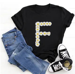 English Alphabet Daisy Flower T Shirt Print
