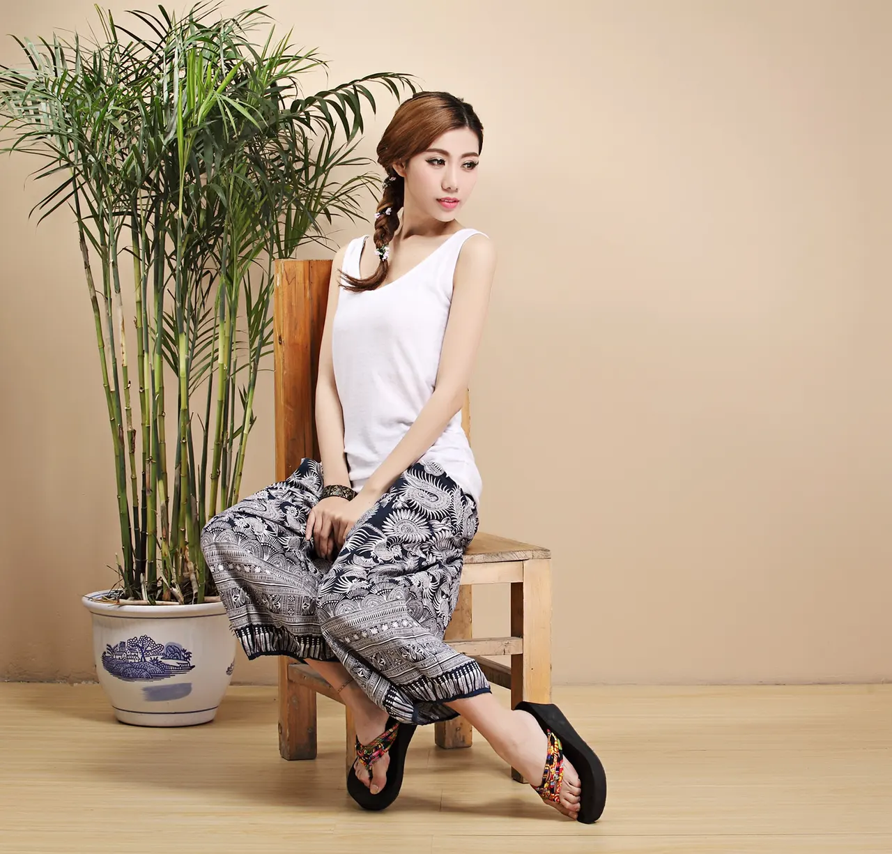 Ethnic Print Pants Linen Cloth Mixed Batch National Style Bloomers