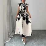 Ethnic Style Printed Small Stand-collar Button-front Long Dress -