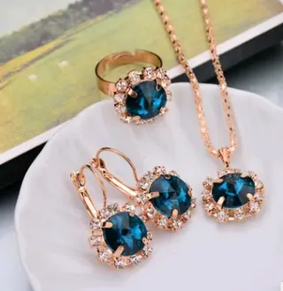 Material: Alloy Process: crystal Set combination: earrings + accessories + jewelry Mosaic material: alloy inlaid artificial gemstone / semi-precious stone Pendant material: artificial crystal