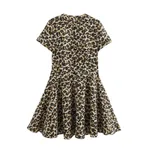 Printed Round Neck Loose Leisure Short Dress - Leopard Print