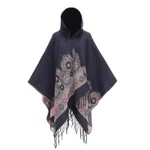 Flower Woven Split Shawl Acrylic Fiber Hat Cloak - Navy