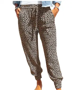 High Waist Leopard Print Drawstring Elastic