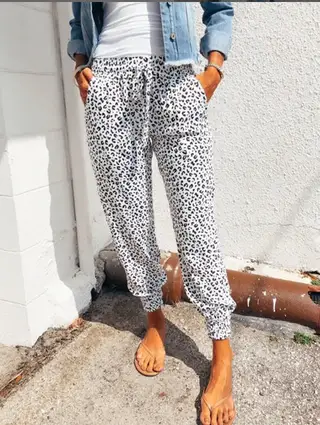 High Waist Leopard Print Drawstring Elastic Waist - White
