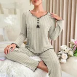 -style Solid-color Ruffled-edge Minimalist Pajama Set - Gray