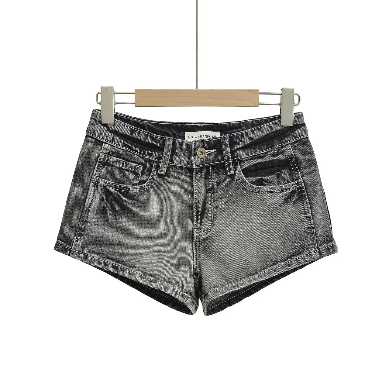 Style Two-button Distressed Tight Stretch Denim Shorts - Grey