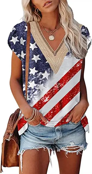 Product information: Fabric name: Cotton Style: Pullover Collar type: V-shaped collar Popular element: lace ColourWhite background printing, white flowers, pink, black and white printing, gray, gradient printing, khaki, blue, blue printing, fluid, green, green background printing, rose red, American flag, light green, meow, color matching, color matching printing Size: S, M, L, XL, XXL Size Information UnitCM Note: 1. Asian sizes are 1 to 2 sizes smaller than European and American people. Choose the larger size if your size between two sizes. differences due to . 2. Please check the size chart carefully before you buy the item, if you don't know how to choose size, please contact our customer service. 3.As you know, the different computers display colors differently, the color of the actual item may vary slightly from the following images. Packing list: Shirt x1pc Product Image: