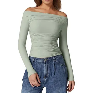 Clothing Top Off-shoulder Long Sleeve T-shirt - Light Green 155