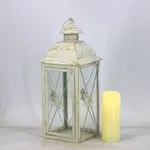 Style Black White Wrought Iron Floor-standing Storm Lantern Tempered