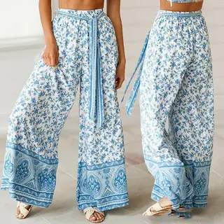 Loose Printed Trousers - Blue