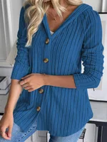 Solid Color Long Sleeve Hoodie - Blue