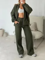 Product information: Pattern: solid color Fabric name: Polyester Color: Army Green, gray, brown, apricot, dark green, in stock, all colors and sizes Sleeve type: regular sleeve Pants length: trousers Main fabric composition: Polyester (polyester fiber) Size: S,M,L,XL,2XL,3XL,4XL,5XL Applicable Gender: Female Style type: temperament commute Sleeve length: long sleeve Popular elements: zipper Style: commute style Craft: collage/stitching Note: 1. Asian sizes are 1 to 2 sizes smaller than European and American people. Choose the larger size if your size between two sizes. differences due to . 2. Please check the size chart carefully before you buy the item, if you don't know how to choose size, please contact our customer service. 3.As you know, the different computers display colors differently, the color of the actual item may vary slightly from the following images. Packing list: Suit x 1 (Top+pants) Product Image: